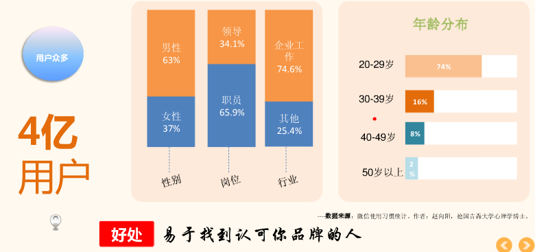 以下(xià)用(yòng)幾張圖來(lái)描述微(wēi)信這(zhè)個<≥(gè)平台特征: